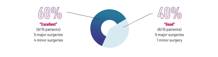100% (15/15) for major and minor surgeries (90% CI, 81.9-100)